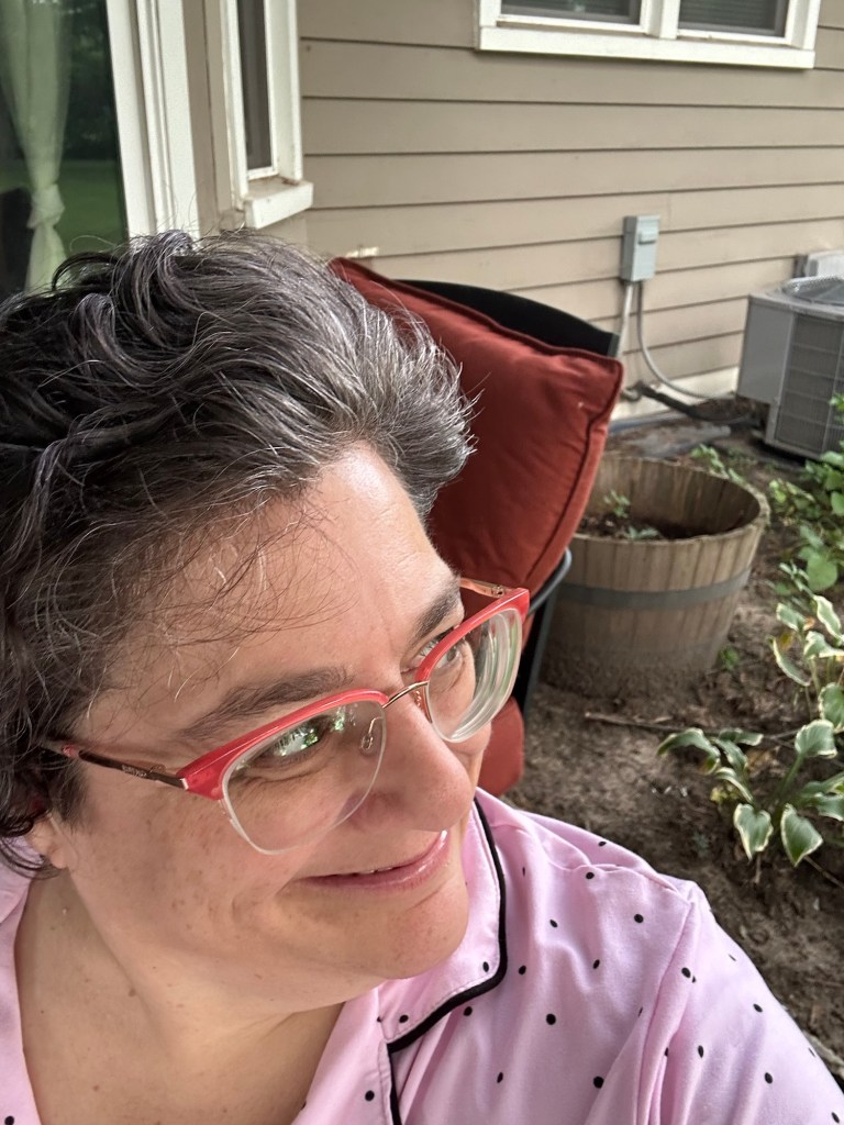 I am sitting outside alone today. Yes, I am still in my pajamas. I am not going to church as I had an Ocrevus infusion so I am staying away this week.